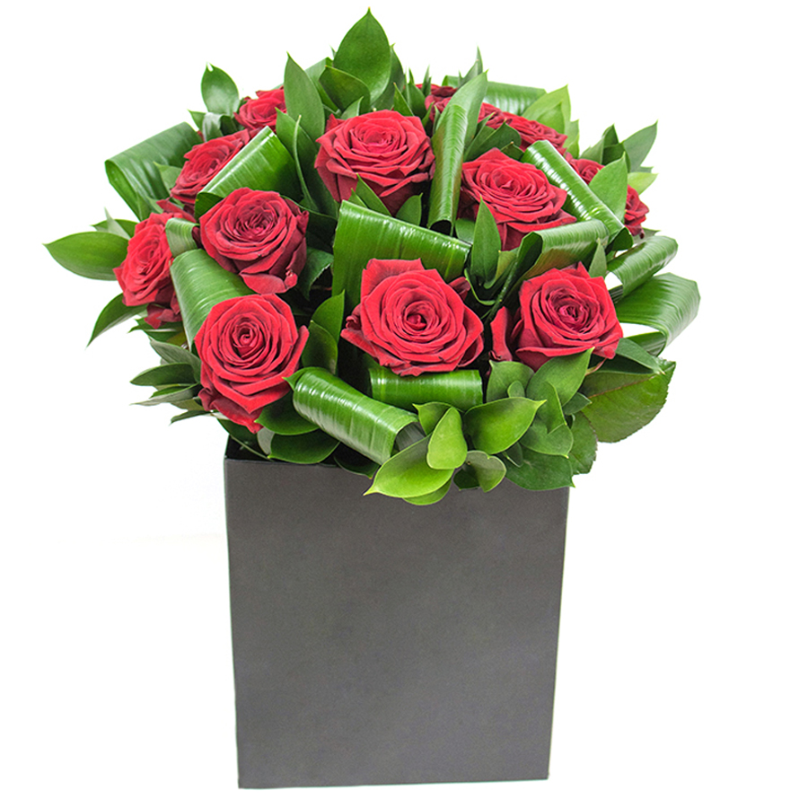 Introduce timeless beauty to your home with our Elegant Red Rose Display, featuring gorgeous red roses, vibrant aspidistra leaves, and delicate ruscus. This unique arrangement is crafted to bring sophistication and charm to any occasion.